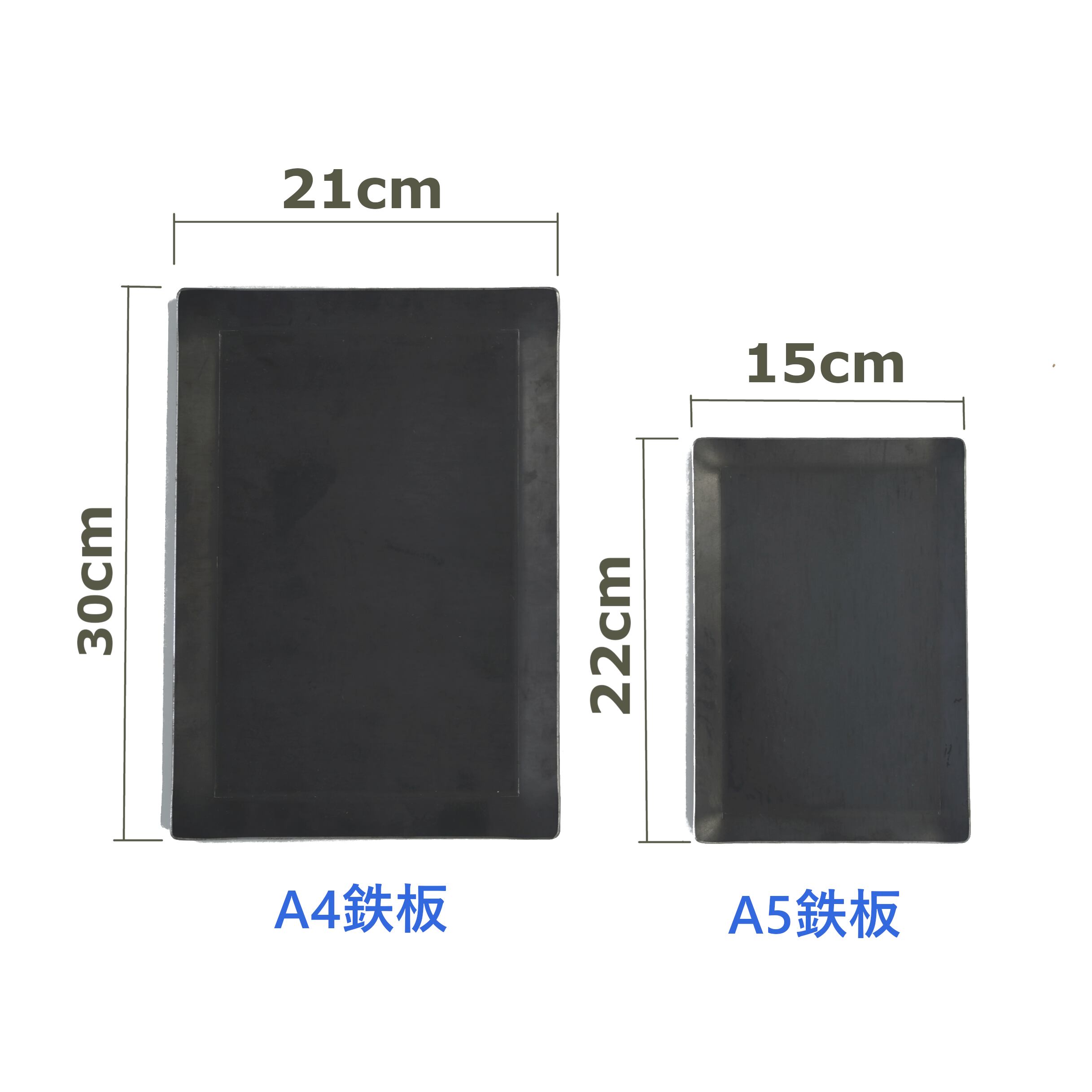 黒皮鉄板の3.2mm厚の単品A4サイズです。調理用として幅広く活躍します。熱伝導性に優れ、熱が均一に広がるので、食材の焼きムラや焦げ付きを防ぎます。また、鉄板は熱を持ち続ける性質があるため、適度な火加減で料理を仕上げることができます。
